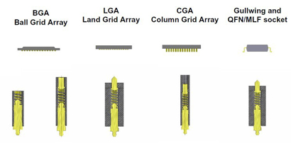 BGA/LGA/CGA/QFN/QFP高頻測試插座產(chǎn)品分球形出腳(SMT)和針形出腳及接觸式三種設(shè)計(jì).球形出腳的BGA插座系統(tǒng)主要適用于芯片的測試及開發(fā)等.該插座系統(tǒng)的特點(diǎn)是不用在PCB板上開孔,BGA插座的焊接方法和BGA芯片的焊接方法完全一樣.同時(shí)如果在客戶的目標(biāo)板上BGA